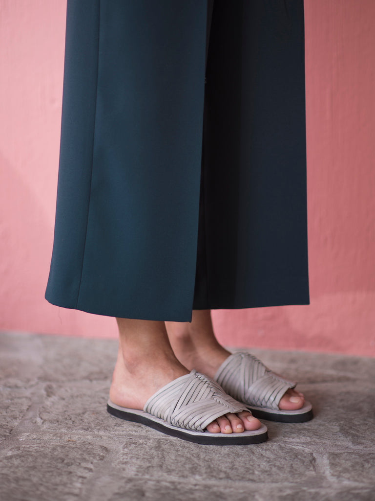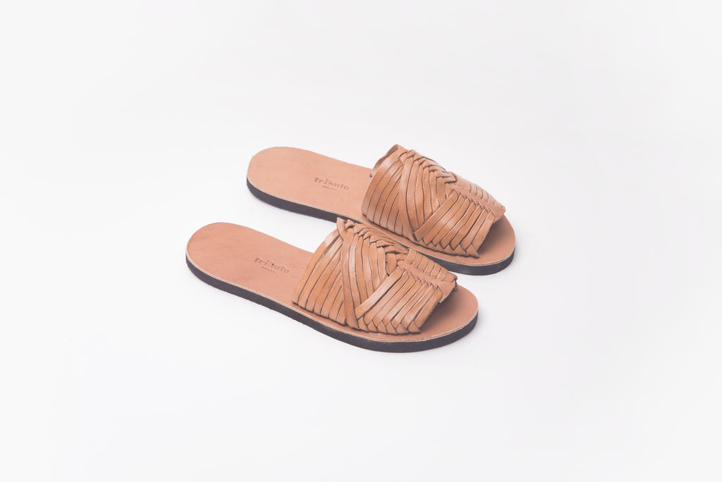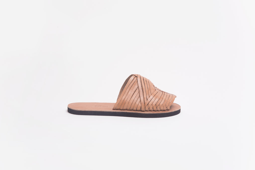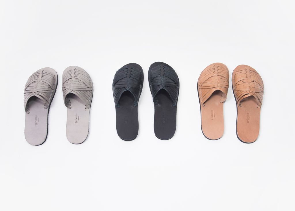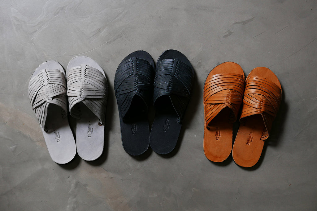 Our goal with this tribute to the "huarache" was to simplify the beautiful aesthetics of the classic model of handwoven leather ribbons through the design of our characteristic seamless sole.